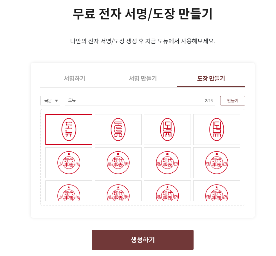 실제로 많은 분들이 전자도장, 전자서명 만들기 서비스를 사용하고 계시는데요(도뉴의 인기 서비스❣)